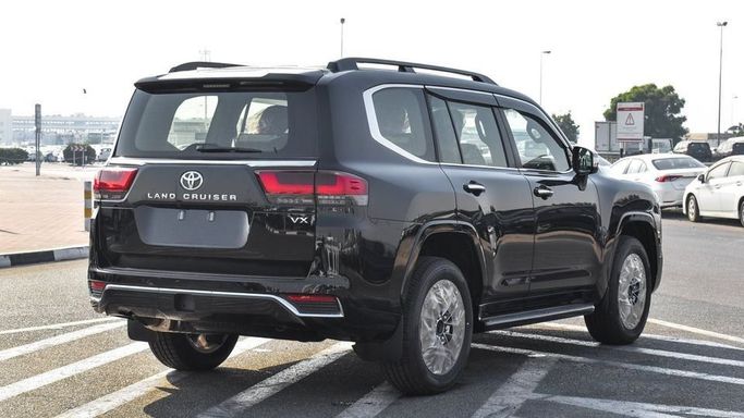 Brand new Toyota Land Cruiser VX 4.0L V6 for sale in Dubai. Black 2024 model, available at Najem Motors FZE. This car has automatic transmission, 6 cylinder engine, 20″ wheels and black interior. GCC specs.