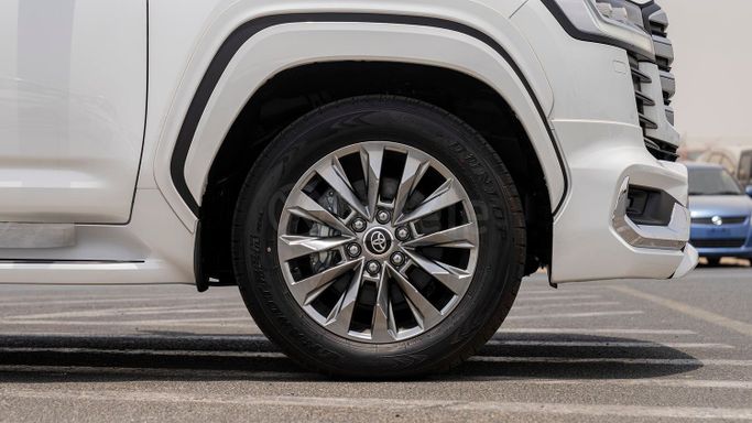 Experience the embodiment of rugged luxury and advanced technology with the 2024 Toyota Land Cruiser 300 Series. This new SUV is not just a vehicle; it's a statement of capability and sophistication, perfect for both off-road adventures and city escapades. With an impressive 415 horsepower engine paired with a smooth automatic transmission, this Land Cruiser offers power that effortlessly conquers any terrain while providing a comfortable ride. The striking white exterior of the Land Cruiser not only exudes elegance but is also designed to handle the demands of various cli