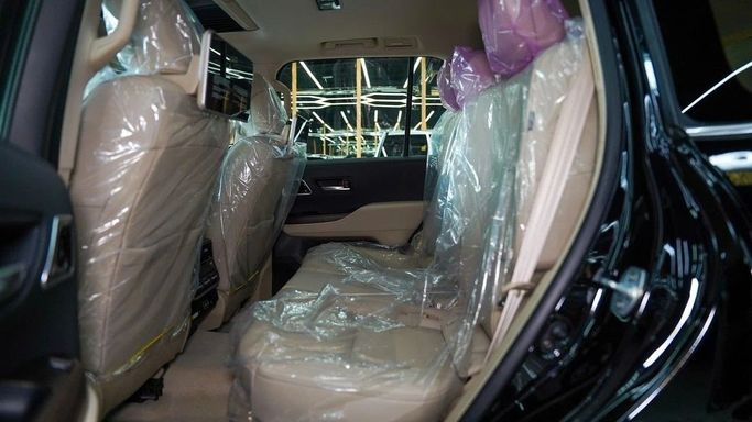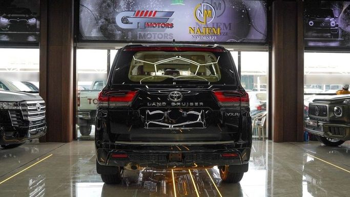 Brand new Toyota Land Cruiser for sale in Dubai. Black 2025 model, available at GT Motors. This car has automatic transmission, 6 cylinder engine, 20″ wheels and beige interior. GCC specs.