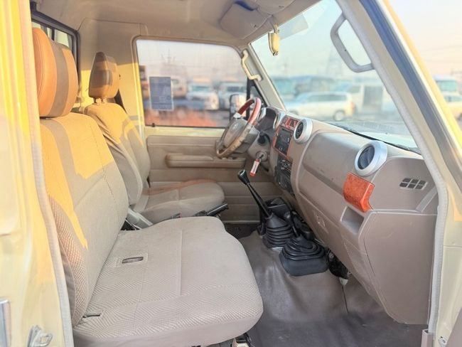 This 2016 Toyota Land Cruiser 70 Series Facelift 1 is a beige GCC-spec single-cab pickup designed for rugged practicality as well as everyday use. It runs a 4.0-liter petrol engine delivering 228 hp, paired with a manual transmission and all-wheel drive for straightforward, dependable performance across various terrains. With only one owner and just 43,000 kilometers on the odometer, it offers a notably low-mileage history that aligns with the proven durability of the 70 Series. The exterior’s practical beige finish and the compact single-cab layout emphasize a work-ready s