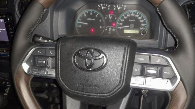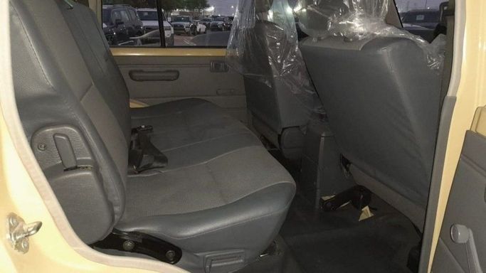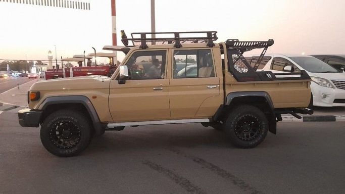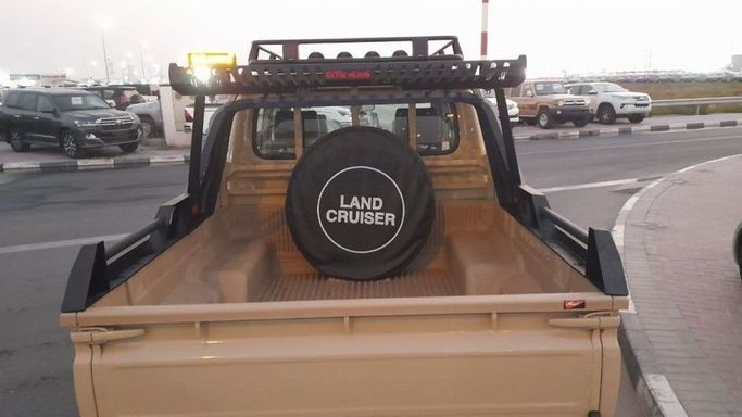 This 2022 Toyota Land Cruiser 70 Series Facelift is a double-cab pickup truck equipped with a 4.5-liter diesel engine that produces 202 hp. It features all-wheel drive and a manual transmission. The vehicle has had one owner and has a mileage of 38,000 km. It is in good condition and has a clear service history. The exterior is beige, which is a calm and practical choice for everyday use. This car combines a sturdy frame and confident handling on the road, along with decent off-road performance, thanks to its all-wheel drive and well-tuned suspension that are characteristi
