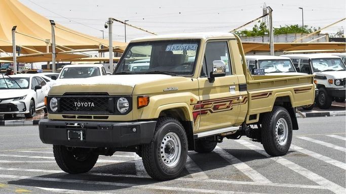 New 2024 Toyota Land Cruiser Pick Up 4.0L V6 Petrol Single Cabin M/T for sale in Dubai. Available from Najem Motors FZE. Manual transmission, 6 cylinder engine, 16″ wheels and beige interior. Never driven, GCC specs.