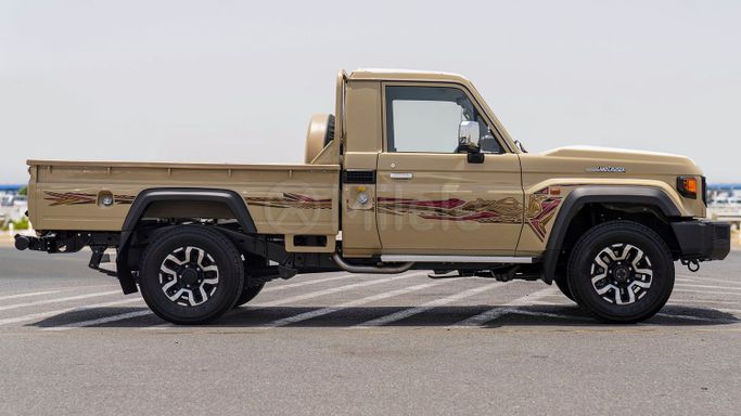 Introducing the 2025 Toyota Land Cruiser 70 Series Facelift 2, a remarkable blend of rugged capability and modern comfort. This new model showcases a striking beige exterior, embodying the spirit of adventure while seamlessly fitting into your urban lifestyle. As a single cab pickup with an impressive 204 horsepower diesel engine, it is engineered to tackle any terrain with ease, ensuring you can journey confidently wherever the road—or the lack of one—takes you. The all-wheel-drive (AWD) system provides outstanding traction and stability, making it an ideal companion for
