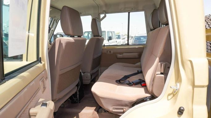 New for 2025, the Toyota Land Cruiser 70 Series Facelift 2 in a warm beige finish offers a practical double-cab pickup with proven off-road capability. It is powered by a 4.0-liter petrol engine delivering 228 horsepower and paired with an automatic transmission, with all-wheel drive providing steady traction across varied terrains. This GCC-spec model reflects regional requirements while incorporating contemporary styling updates and a more refined interior designed for daily use and longer trips. Built for durability, it balances rugged performance with everyday comfort,