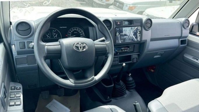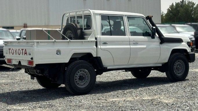 New for 2025, the Toyota Land Cruiser 70 Series Facelift 2 in a double cab pickup blends rugged capability with refined practicality. It is powered by a 4.2-liter diesel delivering 128 hp, paired with a manual transmission for direct engagement and solid low-end torque. All-wheel drive supports confident traction across diverse surfaces, while the white exterior offers a clean, timeless look. The double cab layout provides practical seating and a capable cargo area, suited to everyday tasks as well as tougher jobs. Refreshing updates in this facelift bring a more contempora