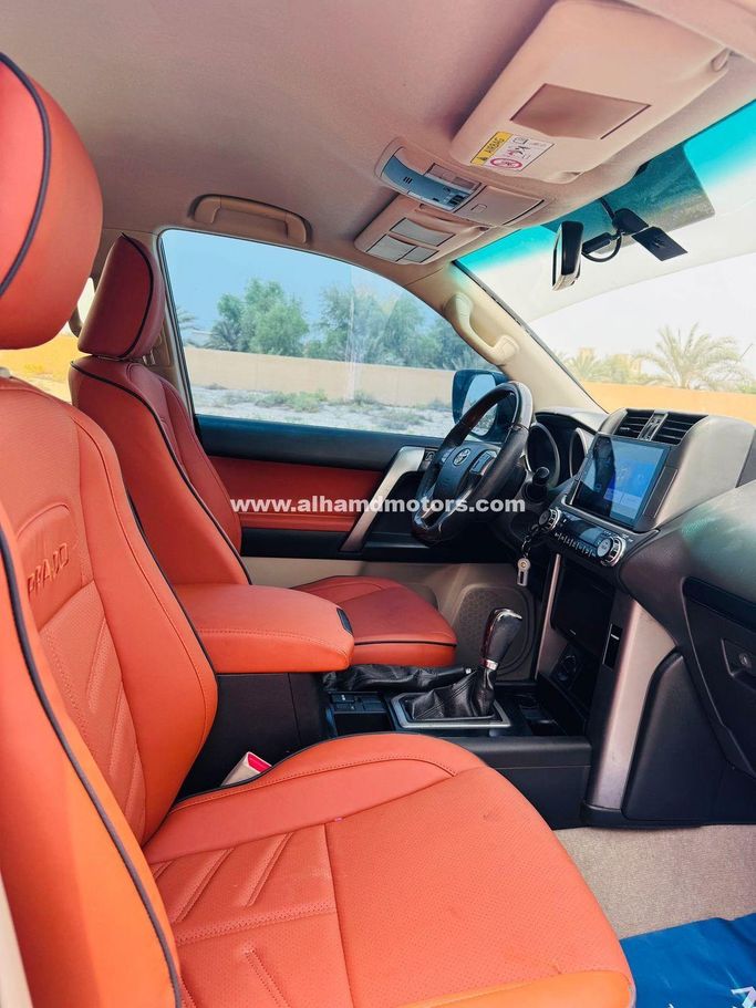 Toyota Land Cruiser Prado TXL ,Year Model 2013 ,Petrol ,2.7 Liter Body Color White ,,Interior Color Orange ,Mileage = 43,500 KM Left hand Drive ,Back Tire ,TV ,FM Radio ,4WD ,2TR Engine Fabric Seats ,7 Seats ,Alloy Wheels ,Key Start ,Dual AC Used Tires ,GCC Specs