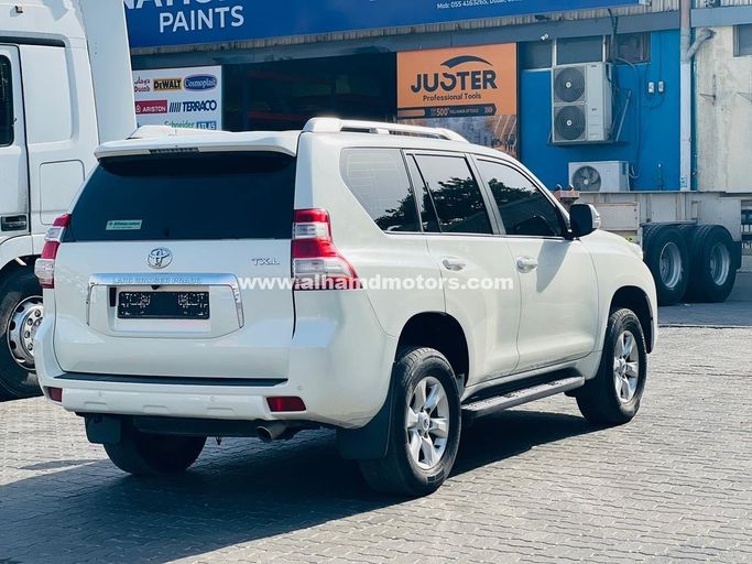 Toyota Land Cruiser Prado TXL ,Model 2013 White Color ,Petrol ,2.7 Liter ,Mileage = 61,300 KM Left hand Drive ,Down Tire ,TV ,FM Radio ,4WD Leather Seats ,7 Seats ,Alloy Wheels ,Key Start ,Dual AC Used Tires ,GCC Specs