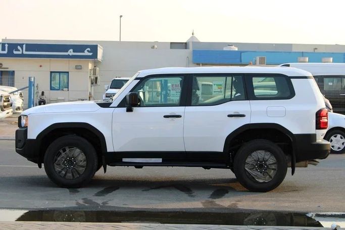 The new Toyota Land Cruiser Prado 250 Series is a five-door SUV in white that combines practicality, power, and comfort. The 2.8-liter diesel engine, with a capacity of 204 hp, is paired with an automatic transmission and all-wheel drive, ensuring confident movement both on the highway and off-road. The GCC regional specification is adapted to the conditions of the region, and the restrained, functional body design, along with a thoughtfully designed interior, provides convenience and space for daily use and long-distance travel. Reliable assembly and high-quality materials