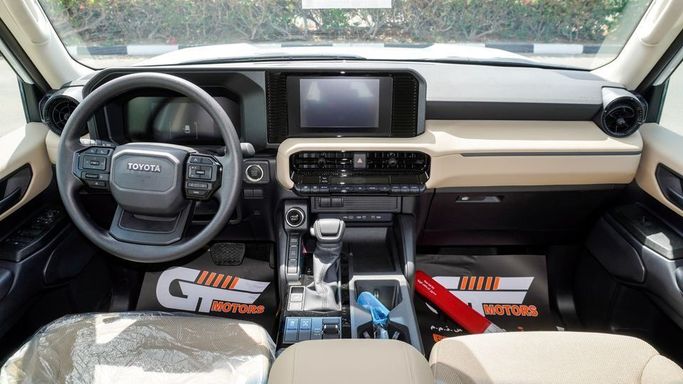New 2025 Toyota Prado 2.4 L for sale in Dubai. Available from Najem Motors FZE. Automatic transmission, 4 cylinder engine, 18″ wheels and beige interior. Never driven, GCC specs.