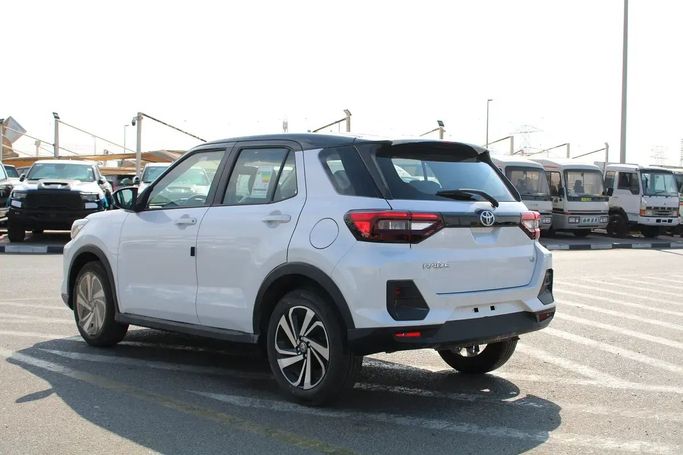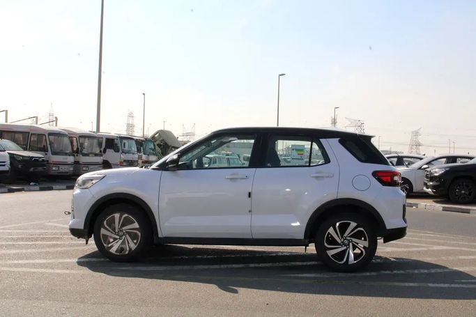 The new 2025 Toyota Raize I in white is a compact five-door SUV designed for modern urban driving and family trips. Under the hood, a 1.0-liter 98 hp gasoline engine is paired with a CVT variable transmission and front-wheel drive, providing smooth acceleration and fuel efficiency on everyday routes. The GCC specification takes into account regional requirements, and the practical interior, along with moderate dimensions, makes the Raize convenient for both city driving and trips outside the metropolis. Aesthetically, the car combines modern styling with a high-rise seat, w