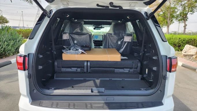 We present to your attention the new Toyota Sequoia 2024 — the perfect combination of power, comfort and modernity. This third-generation SUV, made in a stylish white color, will become your reliable companion both in the urban jungle and on distant highways. Under the hood of the Sequoia is a powerful hybrid engine capable of producing an impressive 437 hp. This high-tech powertrain not only provides excellent dynamics, but also consumes fuel efficiently, making each trip more economical. All-wheel drive and automatic transmission guarantee a confident grip on the road in