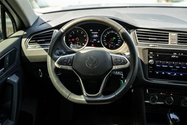 This used 2024 Volkswagen Tiguan, Generation III, is a silver 5-door SUV powered by a 1.5-liter petrol engine delivering 130 hp, paired with a front-wheel-drive layout and an automated manual transmission. It carries GCC specifications and has had a single previous owner, with about 89,000 km on the odometer. The interior prioritizes comfort and practicality, offering supportive seating and flexible cargo space, along with intuitive controls and a quiet, composed ride for daily use. The exterior design features clean lines and a confident stance, while the GCC setup suits l