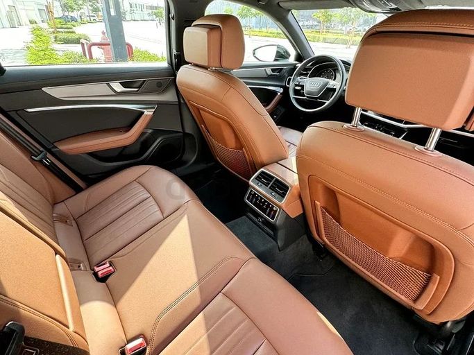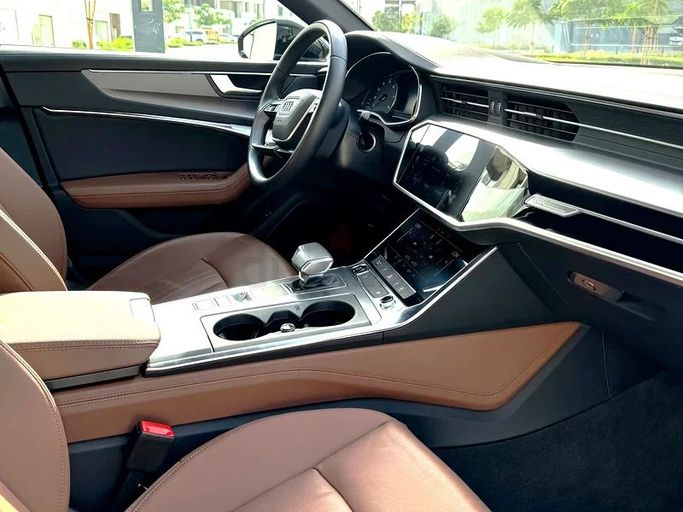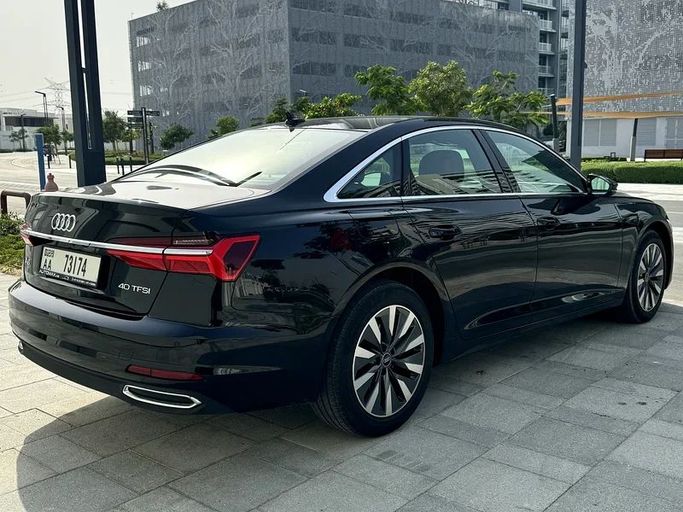 The Audi A6 40 TFSI is a luxury sedan with a smooth 2.0L turbo engine, leather seats, sunroof, premium sound system, and advanced safety features. It offers a quiet, comfortable ride with a stylish interior and is ideal for both business and family trips.