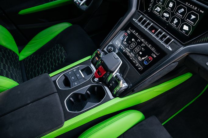 The Lamborghini Urus is a luxury crossover with a powerful 4.0—liter V8 engine with 650 hp, accelerating to 100 km/h in just 3.6 seconds. It combines the sporty spirit of a Lamborghini supercar with the versatility of an SUV, offering a top speed of 305 km/h, all-wheel drive and adaptive suspension. The aggressive design, premium interior, and advanced technology make the Urus the perfect choice for those who value power, style, and comfort. This 2021 Lamborghini Urus (Generation I) is a five-door SUV that pairs a Green exterior with a Black interior, offering a bold yet re