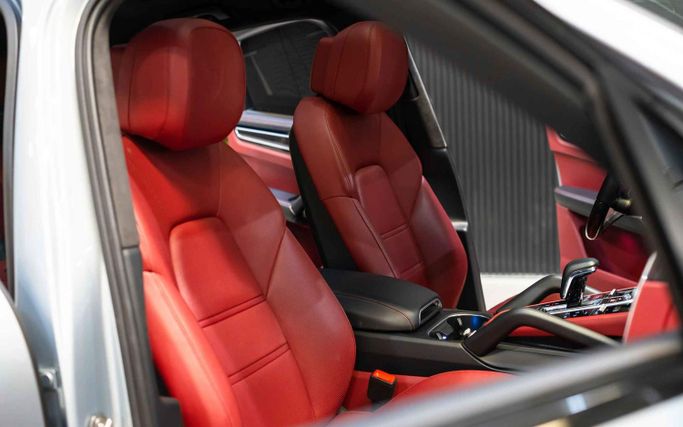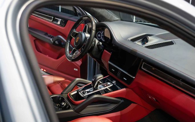 The 2023 Porsche Cayenne GTS in a sleek silver colour offers a dynamic driving experience. With a spacious interior featuring red seats for up to five passengers, it combines style and comfort. Powered by a robust V8 engine, producing at least 541 horsepower, the Cayenne GTS delivers impressive performance. The Cayenne is equipped with high-definition HD Matrix LED Headlights, ensuring excellent visibility in various driving conditions.