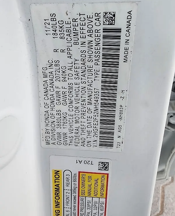 Honda Civic 2022 Speed camera monitor, radar, lane departure Insurance and age registration