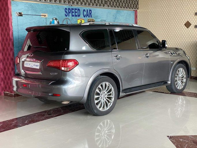 This 2017 Infiniti QX80 I Facelift 2, GCC-spec in grey, is a one-owner used SUV with about 110,000 km. Under the hood sits a 5.6-liter V8 delivering 405 hp, paired with an automatic transmission and all-wheel drive for confident performance in a range of conditions. The powertrain offers strong, smooth acceleration, while the AWD system enhances traction and stability when needed. Inside, the cabin emphasizes space and comfort with three rows of seating and premium materials, delivering a quiet, refined ride and ample cargo capacity for daily use or longer journeys. The GCC