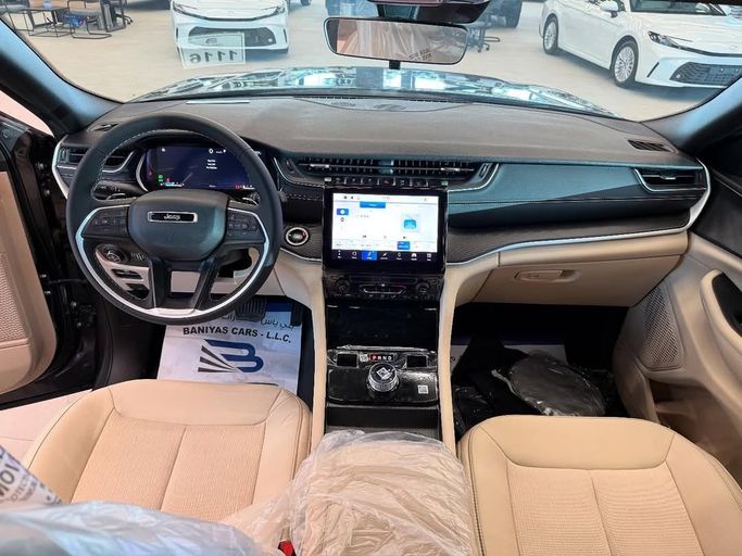 Jeep Grand Cherokee Laredo The model : 2025 Specs : 6 cylinder Engine 3.6 293 horsepower 8 speed automatic transmission Four wheel drive system 7 seater Fuel tank capacity 87 liters Fuel consumption 11.7 kilos per litre good rating His LED lights Size 18 aluminum rails Side mirrors in black Door knobs in burgundy color Smart entry Pedals Rear sensors Beige cloth seats Neutral screen size 10.1 inches Supporting the car play feature Rear camera Drum display screen 10.25 inches Blind dot Warning to Go Off Track Automatic driver's seat Stretching his fingerprint Bluetooth Cont