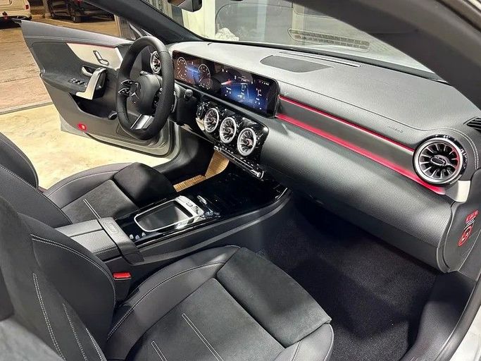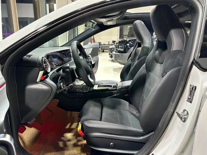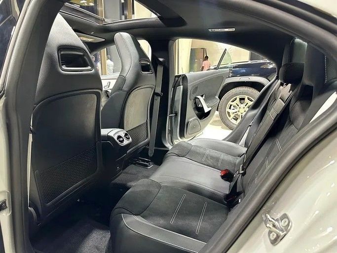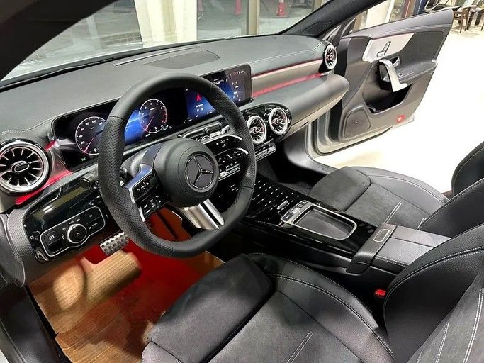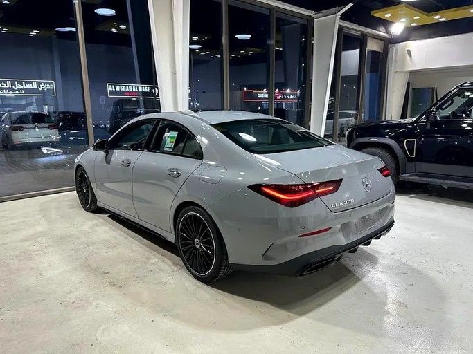 Mercedes-Benz CLA 200 Model: 2026 Specifications: Gulf Vehicle specifications - AMG lightweight 19-inch multi-spoke wheels - 360 degree camera - 4-way lumbar support -7G-DCT transmission - Active Brake Assist system - Active Parking Assistant with PARKTRONIC - Adaptive high beam assistant - Advanced sound system - GPS antenna - Fully digital meter display - Ambient lighting - AMG exterior design - AMG carpets - Illuminated AMG door sills with the "AMG" logo and a replaceable cover - AMG leather package - AMG Line - Android Auto - Apple CarPlay - Auto dimming rear view mir