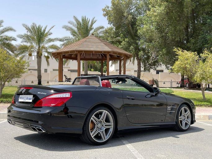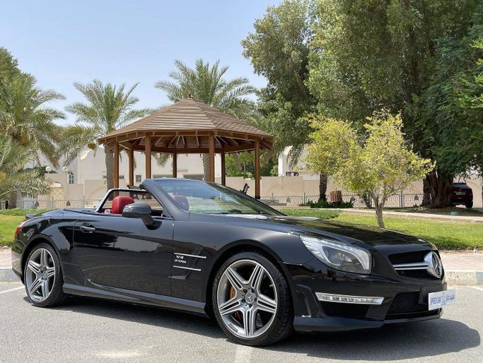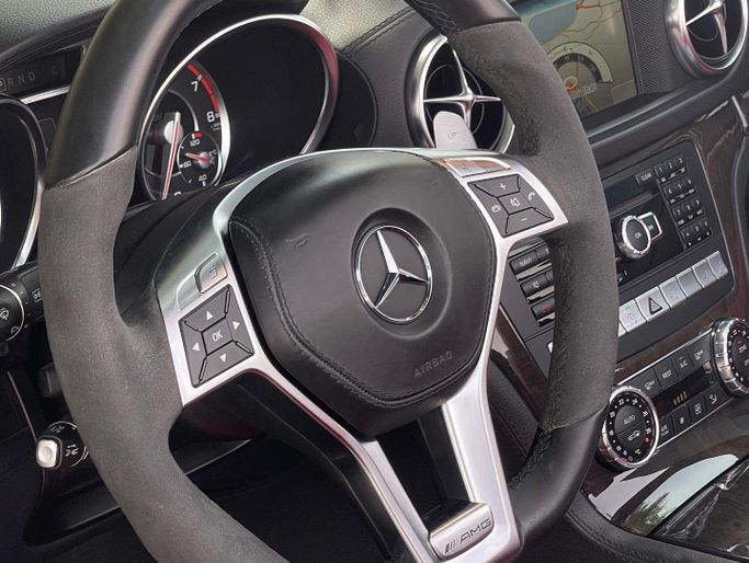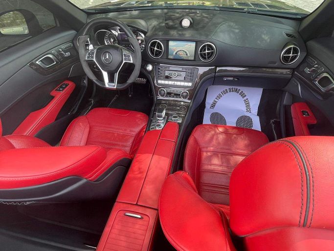 This 2015 Mercedes-Benz SL-Class AMG (R231) Black Roadster combines high-performance drive with luxury refinement. Under the long hood sits a 5.5-liter V8 delivering 537 horsepower as part of the 63 AMG package, paired with rear-wheel drive and an automatic transmission for a responsive, composed ride. The retractable hardtop adds open-air pleasure without sacrificing the sleek profile when closed. GCC-spec configuration indicates equipment tuned for regional needs, and with a single previous owner and about 95,000 kilometers, it presents a well-preserved example of Mercede