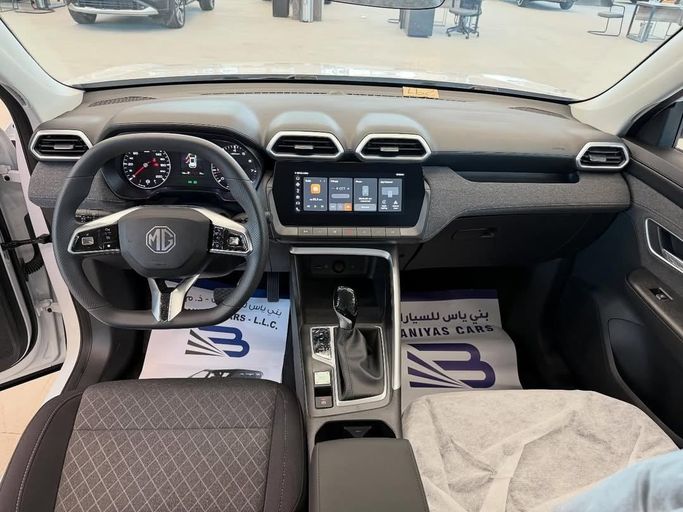 MG ZS Model : 2025 Specs : 4 cylinders 1.5 engine 112 horsepower CVT automatic transmission Fuel consumption 17.2 Halogen lights Size 16 aluminum rails Signs on side mirrors Rear sensors LED back light Fabric seats in black and grey Information screen size 10.25 inches Car play Rear camera Running his fingerprint Automatic hand brake Control of the population Bluetooth Speed stabilizer