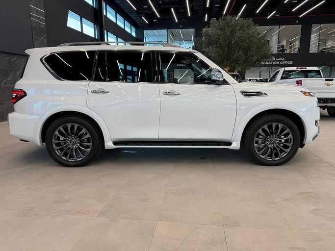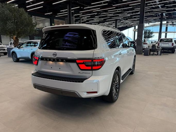 Nissan Armada 8 Cylinder Platinum the model : 2024 Specs : 8 cylinder engine 400 horsepower 7 speeds LED lights Warning to Go Off Track Head-on Collision Alert 22 aluminum herring Chrome folding side mirrors Signs on side mirrors Blind dot Door knobs are chrome Entering his fingerprint Electricity bottle Electric folding back chairs Remote operating Electricity bottle The 4 senses behind the scenes Nfqishon screen Ambient Cameras 360 Cooling and heating the front seats Wireless charger Automatic driver and passenger seat Rrigerator Control the voice commands. Control the c