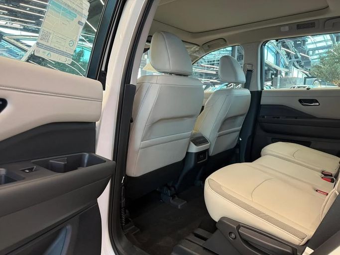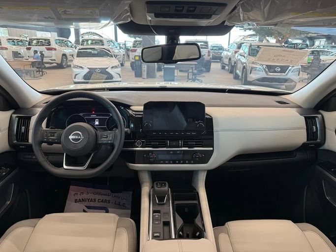 Nissan Pathfender SV Front Wheel Drive Model : 2024 Specifications : 6 cylinder Engine 3.5 271 horsepower 340 rpm Automatic Qeerr 9 speed 8 seater LED lights Fog scouts Size 20 aluminum rails Folding side mirrors with flasher signs Smart entry The 4 senses behind the scenes LED back light Hook behind me The bear is electric Exit track alert Head-on Collision Alert Remote operating Beige leather seats Panorama roof opening 9 inches screen Car play Surrounding cameras 360 Running his fingerprint Control the count of flights Control the voice commands. Bluetooth Automatic han