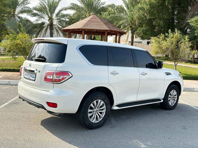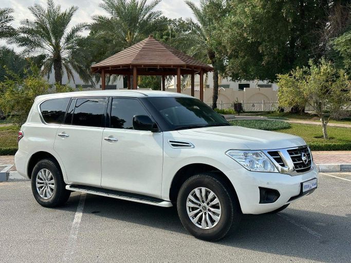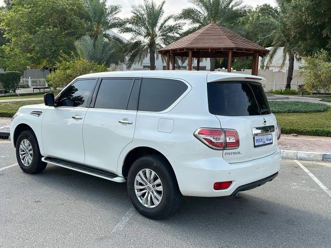 This 2019 Nissan Patrol Y61 Facelift (Generation V) is a 5-door SUV in white, equipped with all-wheel drive and an automatic transmission. It runs a 4.8-liter petrol engine that delivers about 280 horsepower, offering solid on-road performance with dependable off-road capability. With a single previous owner and around 100,000 kilometers on the clock, it reflects a history of careful use and regular maintenance. The interior provides generous space and a practical, durable layout, well-suited for daily family use or weekend adventures, while the rugged exterior carries Patr