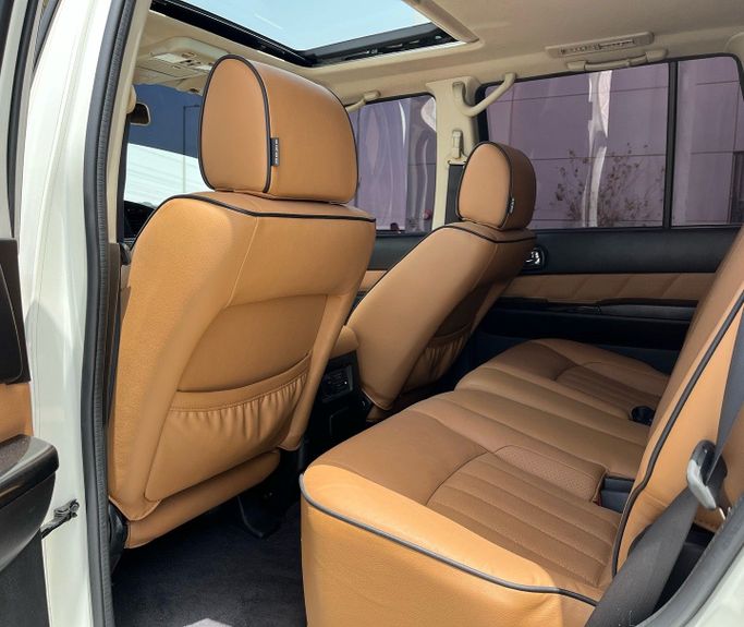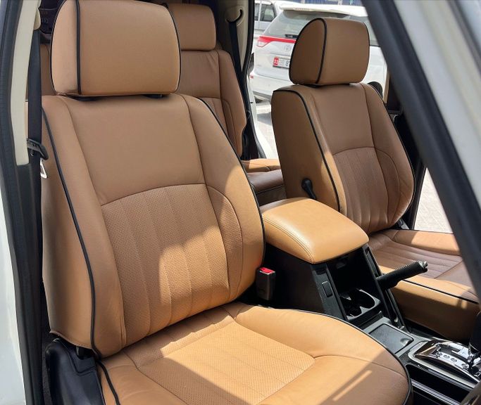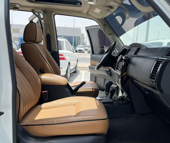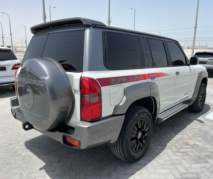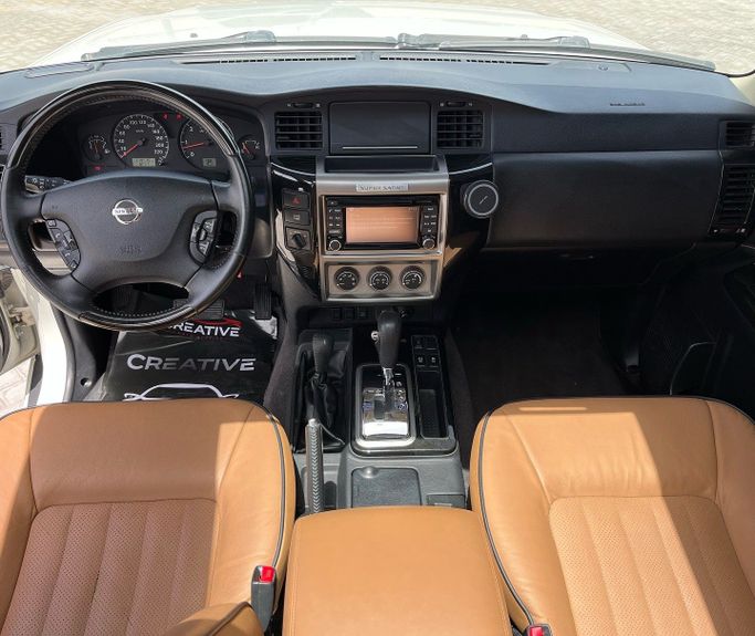 Used 2019 Nissan Patrol Y61 Facelift (Generation V) 5-door SUV in white, powered by a 4.8-liter petrol V8 delivering 245 hp, paired with an automatic transmission and all-wheel drive. Built to meet GCC specifications, it suits hot climates and variable road surfaces while offering confident highway stability and strong towing potential. With a single previous owner and about 114,000 km on the odometer, this Patrol balances rugged capability with everyday comfort, featuring a roomy cabin, practical seating, and durable materials designed for long trips. The facelift updates