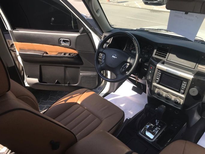 This used Nissan Patrol V (Y61) Facelift comes in white and carries GCC specifications as a five-door SUV. It is powered by a 4.8-liter petrol V8 delivering 245 horsepower, mated to an automatic transmission with all-wheel drive for confident performance on varied roads and light off-road use. With a single previous owner and about 50,500 kilometers on the odometer, it offers low mileage for its age and a history of careful use. Inside, the cabin emphasizes comfort and practicality, with spacious seating, durable materials, and controls that are straightforward to operate i