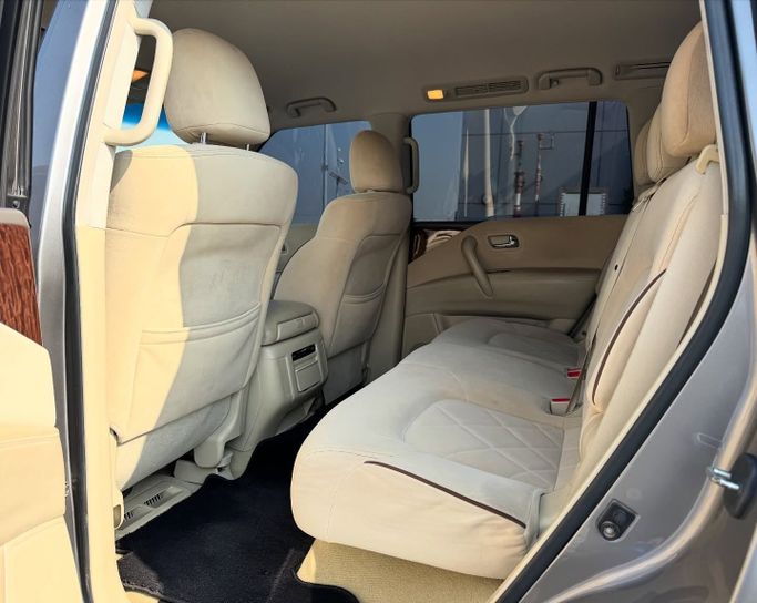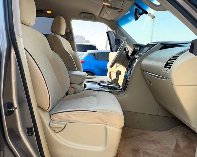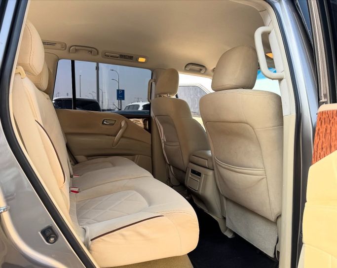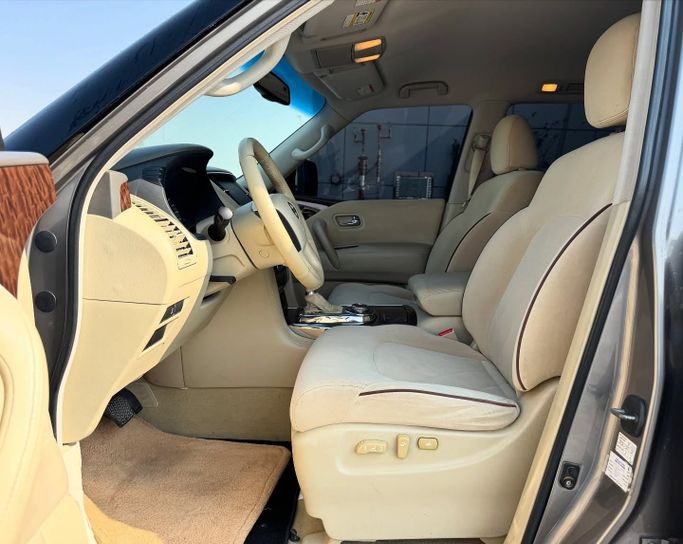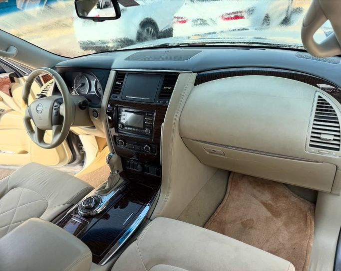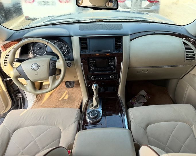 This 2013 Nissan Patrol VI (Y62) in grey is a used 5-door SUV powered by a 5.6-litre V8 petrol engine delivering 405 hp, paired with an automatic transmission and all-wheel drive. With GCC specifications and a single prior owner, it has 244,000 km on the clock. The Patrol blends strong on-road performance with serious off-road capability, offering confident acceleration and a stable highway ride while maintaining a rugged, durable feel that suits long journeys and varied terrain. Inside, the cabin is spacious and versatile, prioritizing comfort and practical layout for dail