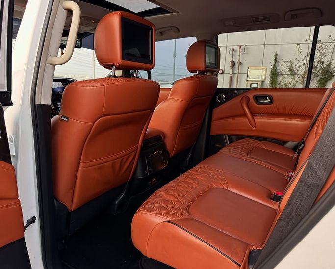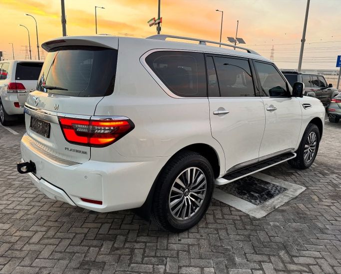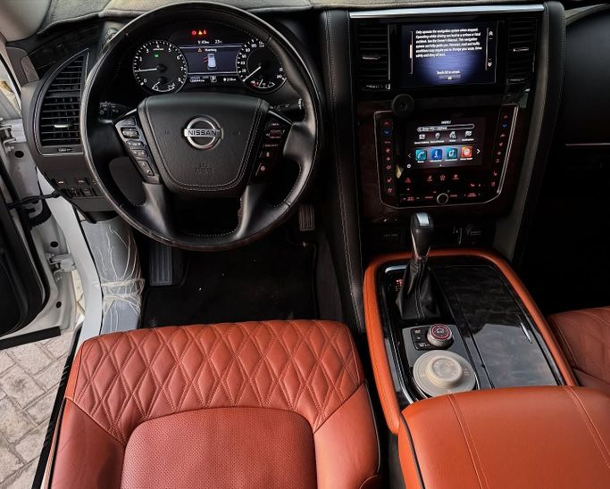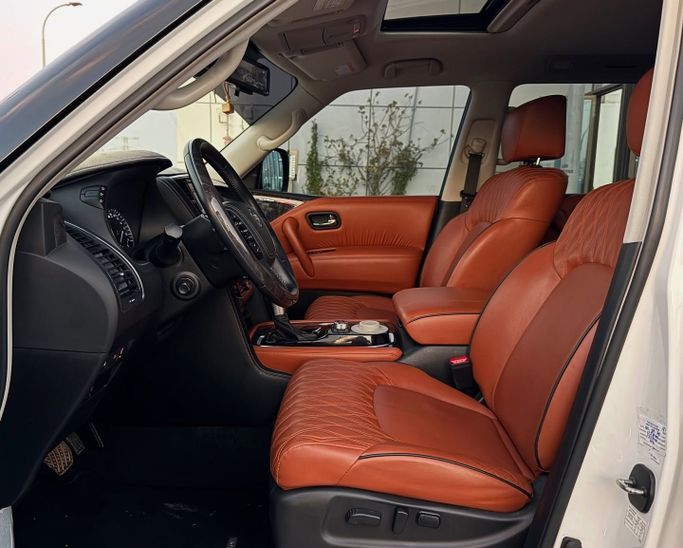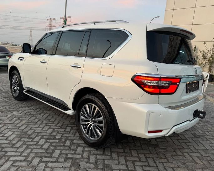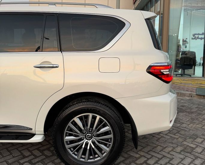 Nissan Patrol VI (Y62) Facelift 2, built in 2021, white 5-door SUV with all-wheel drive and automatic transmission. This vehicle is operated by one owner and has a mileage of approximately 126,000 kilometers. It features a 4.0 L V6 engine with a capacity of 275 hp, running on gasoline. The car combines power and confident handling: the robust engine ensures smooth performance, while the all-wheel drive system allows for effective steering on various surfaces. The cabin offers a spacious and comfortable layout, maintaining a high level of comfort for both long-distance and