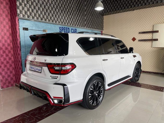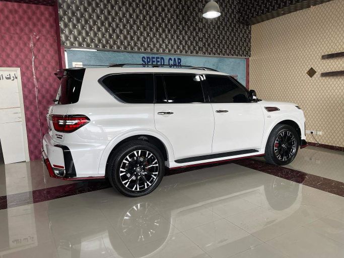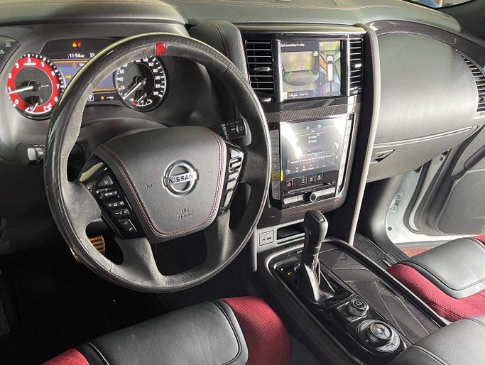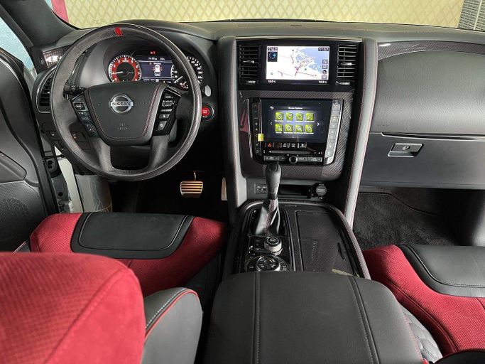 This 2021 Nissan Patrol VI (Y62) Facelift 2 presents in white and is a well-kept, all-wheel-drive SUV with a practical five-door layout and a single-owner history. It rides on a 5.6-liter V8 petrol engine delivering around 400 horsepower, paired with a smooth automatic transmission, offering strong performance for both highway comfort and off-road capability. The GCC-spec configuration ensures regional equipment standards are met, while the facelift adds refreshed styling and up-to-date feel inside. With only about 5,000 km on the clock, the interior remains spacious and re