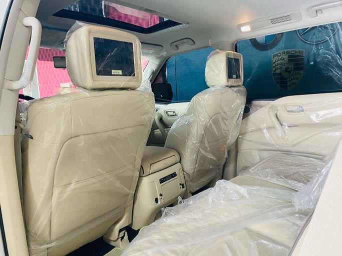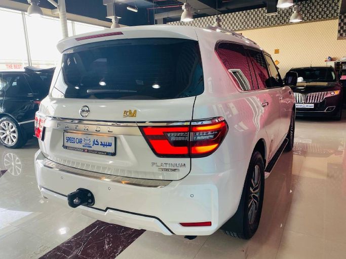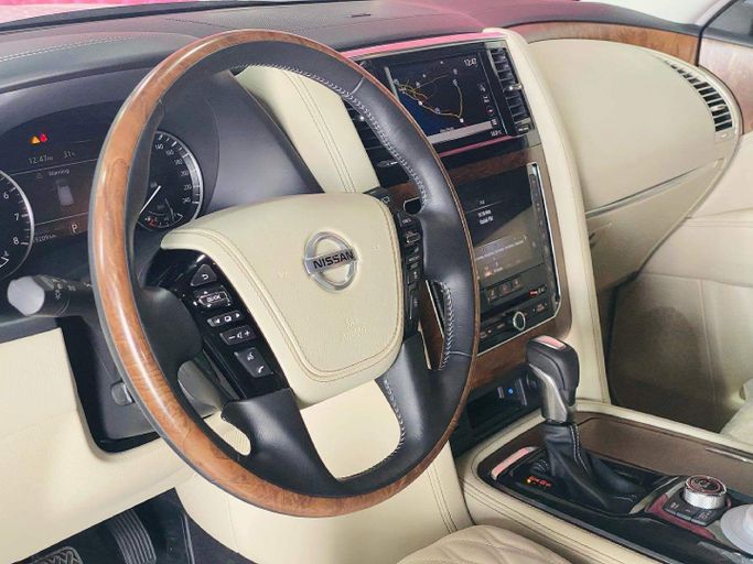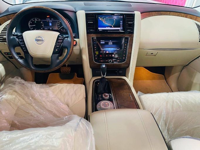 This 2021 Nissan Patrol VI (Y62) Facelift 2 is a used but well-preserved 5-door SUV finished in white that combines a confident highway presence with serious off-road capability. Under the hood sits a 5.6-liter petrol V8 producing 400 horsepower, paired with an automatic transmission and all-wheel drive for assured acceleration and traction in varied conditions. The GCC-spec model reflects regional tuning and equipment, while its single-owner history and low mileage—about 19,000 km—suggest light overall use and careful ownership. Inside, the Patrol offers a spacious cabin d