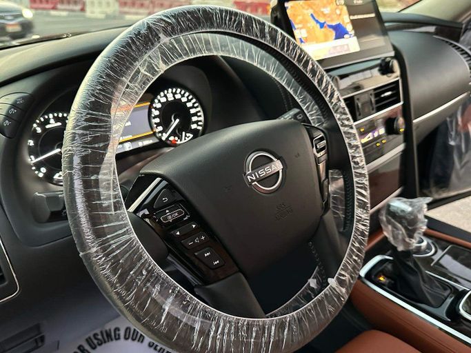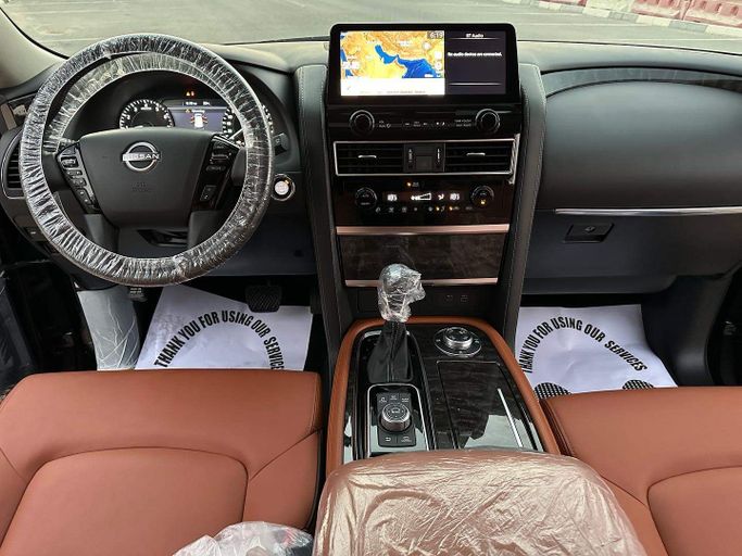2023 Nissan patrol V8 400 Hp under warranty from agency (Al msuood Motors) Full Service in agency • Engine: 5.6 • Transmission: Automatic • Exterior Color: Black • Interior Color: Brown • Accidents: Free of Accidents • Service History: Full Service History • Features: - ABS: Anti Braking system - TCS: traction control system - EBD: Electronic braking distribution - Air Bag - Fabric - 1Way Power Seats - way Automatic for the driver - Speakers Sound System - Inch Touch Screen - Navigation system - Car Apple play and android play - Auxiliary Input Jacks - Comfort and Convenie