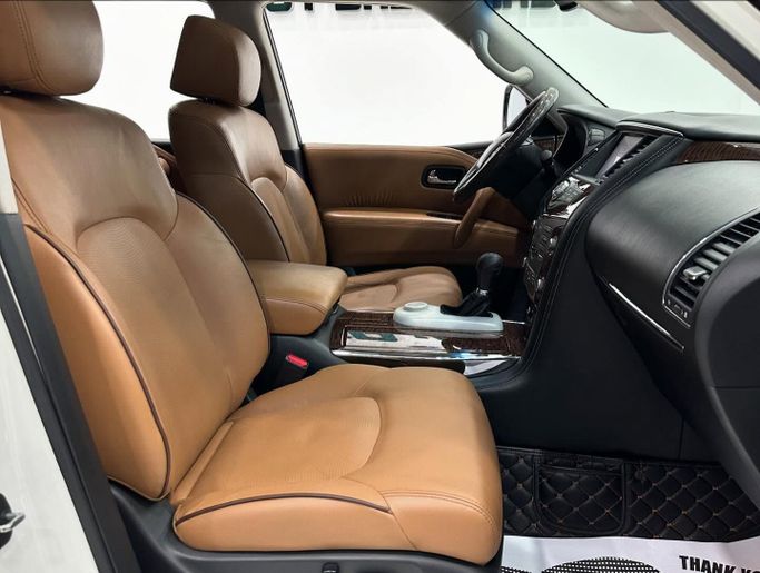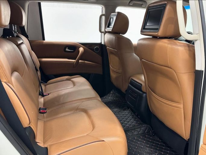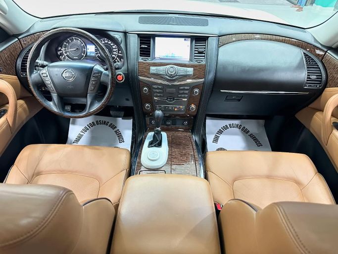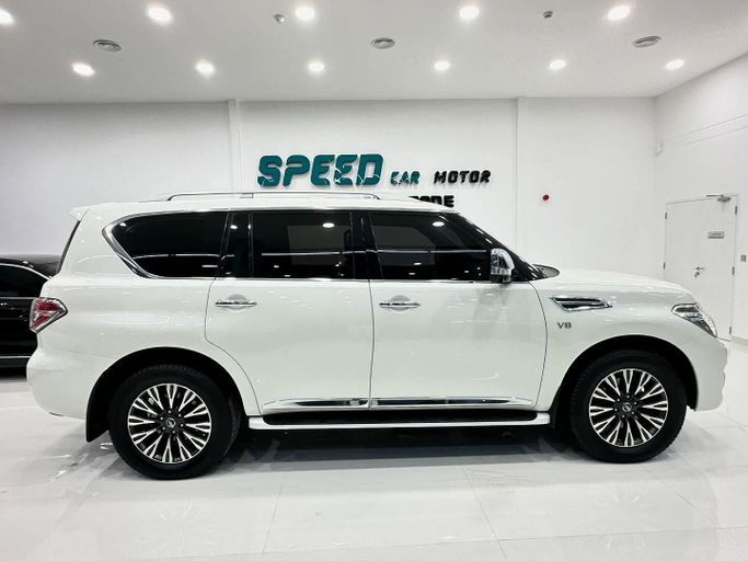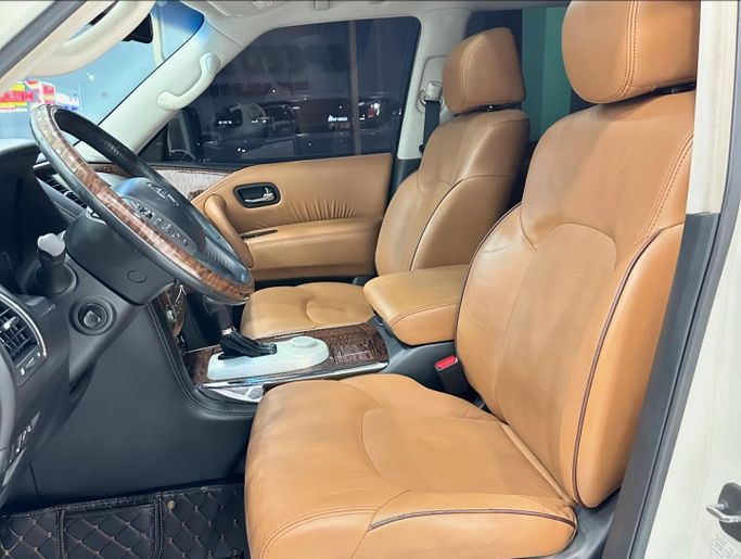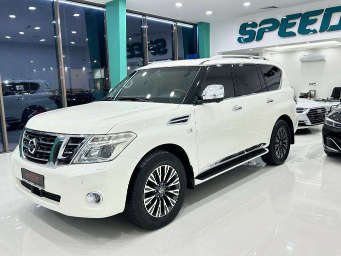 This 2014 Nissan Patrol VI (Y62) Facelift is a white, five-door SUV powered by a 5.6-liter petrol V8 delivering 317 horsepower, paired with an automatic transmission and all-wheel drive. With a single previous owner and around 170,000 kilometers on the clock, it combines rugged capability with everyday practicality. The Patrol's broad stance and confident road presence reflect its SUV-to-off-road versatility, while the V8's smooth torque supports comfortable highway cruising and confident overtaking. Inside, the cabin offers spacious seating and straightforward controls, de