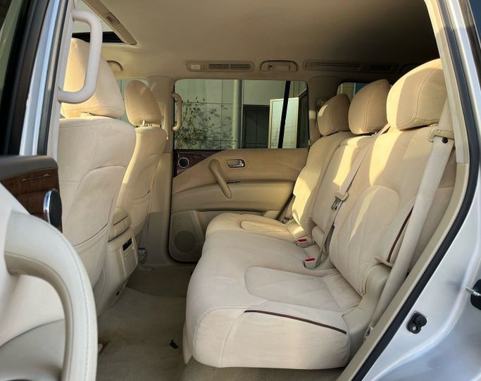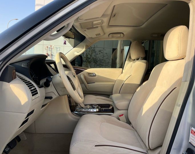 Nissan Patrol VI (Y62) Facelift, 2017 model year, in silver color. This five-door SUV features all-wheel drive and an automatic transmission. Under the hood, a 4.0-liter gasoline engine with a capacity of 275 hp provides confident dynamics and a comfortable ride, both on the highway and in various conditions. This vehicle has had one owner and has a mileage of approximately 215,000 km, which indicates careful operation and the reliability of its structure. The Patrol combines a spacious cabin, a sturdy frame, and the endurance characteristic of the model. The facelift giv