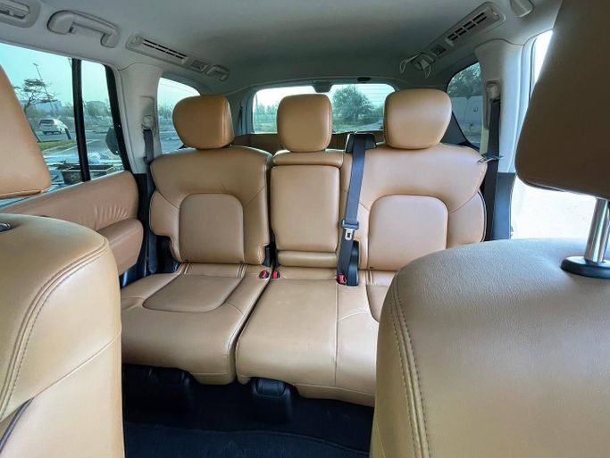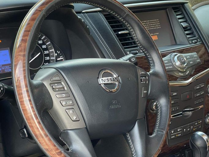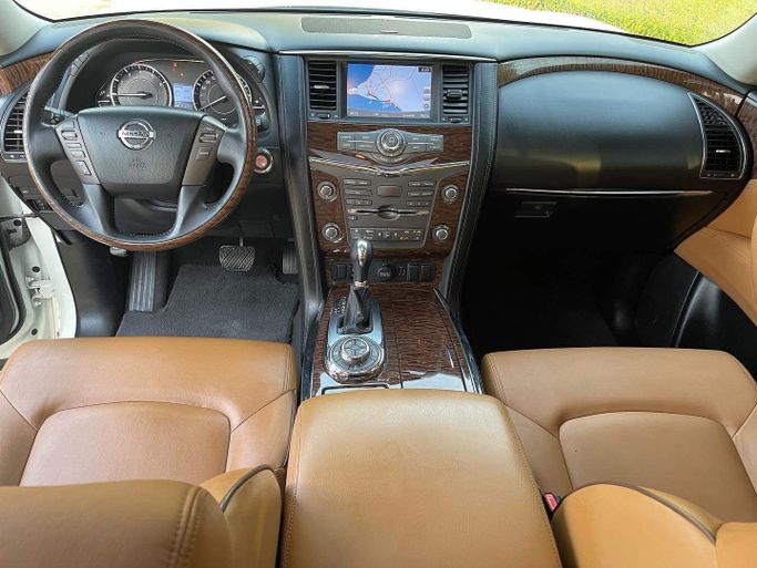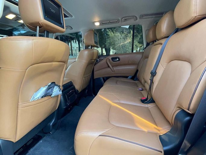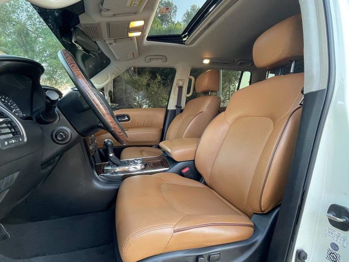 This 2018 Nissan Patrol VI (Y62) Facelift is a white five-door SUV with a single previous owner and about 120,000 km on the odometer. It is powered by a 5.6-liter petrol engine delivering 317 horsepower, paired with an automatic transmission and all-wheel drive for confident performance in a range of conditions. The Patrol’s spacious, well-equipped interior balances practical comfort with rugged capability, offering room for passengers and cargo while delivering a refined ride for daily use and longer journeys. The VI Facelift updates provide a more contemporary look and sm