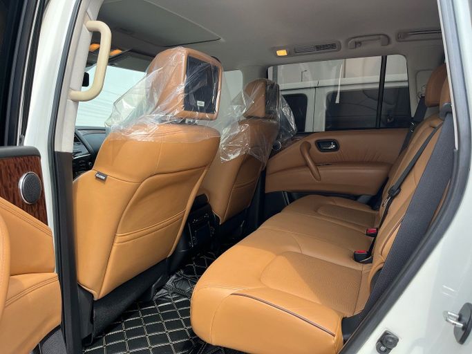 This 2019 Nissan Patrol VI (Y62) Facelift is a white, five-door SUV built for both confident highway cruising and capable off-road handling. Under the hood sits a robust 5.6-liter petrol V8 delivering 405 horsepower, paired with an automatic transmission and all-wheel drive for steady traction in varied conditions. With GCC specifications and a single-owner history, it presents a clean, well-kept example with about 92,000 kilometers on the clock. The Patrol's design blends a commanding presence with practical interior space, offering a roomy cabin and a versatile cargo area