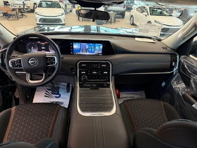 Nissan Patrol LET1 Twin Turbo Model : 2026 Specs : 6 cylinder engine 3.5 liters 425 horsepower 700 rpm 9 speed automatic transmission Double light and heavy Your hand is behind me Fuel tank capacity 97 Fuel consumption 9.9 LED lights His lil props Aluminum rings, size 18 charred Front and rear sensors Folding side mirrors flasher signs 4 door fingerprint entry Fabric seats in black Front width screen size 12.3 inches Rear camera His refrigerator Automatic driver and passenger seat Driving positions Skin dwellers Control voice commands and flight counter Qeerr Tabtronk Blu