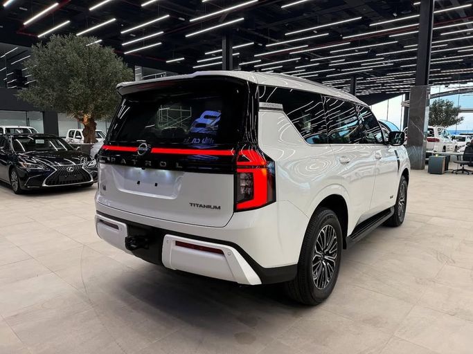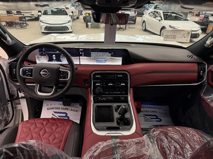 Nissan Patrol Titanium Plus Twin Turbo Model : 2026 Specs : 6 cylinder engine 3.5 liters 425 horsepower 700 rpm 9 speed automatic transmission Fuel tank capacity 97 LED lights City supporters Size 20 aluminum rails Front and rear sensors Folding side mirrors flasher signs Entering his fingerprint Electricity bottle Remote operating Leather seats in red Panorama roof opening Warning to Go Off Track Blind dot Two screens front width 14.3 inches 2 rear cameras Rear screens Cooling and heating the front seats Driver seat storage memory Automatic population status modification