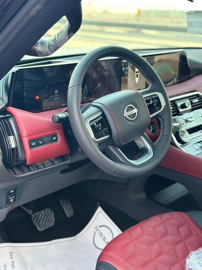 New 2026 Nissan Patrol LE Platinum City in a deep black finish presents a commanding, ready-for-anything footprint. This 5-door SUV is built to meet GCC specifications, pairing a 3.5-liter petrol V6 with 425 horsepower to an automatic transmission and all-wheel drive. The dark exterior and clean lines convey a sense of durable refinement, while the overall stance hints at the capacity that sits beneath. Power is delivered with smooth authority thanks to the 3.5-liter engine, with 425 horsepower translating into confident acceleration and steady, confident performance acros