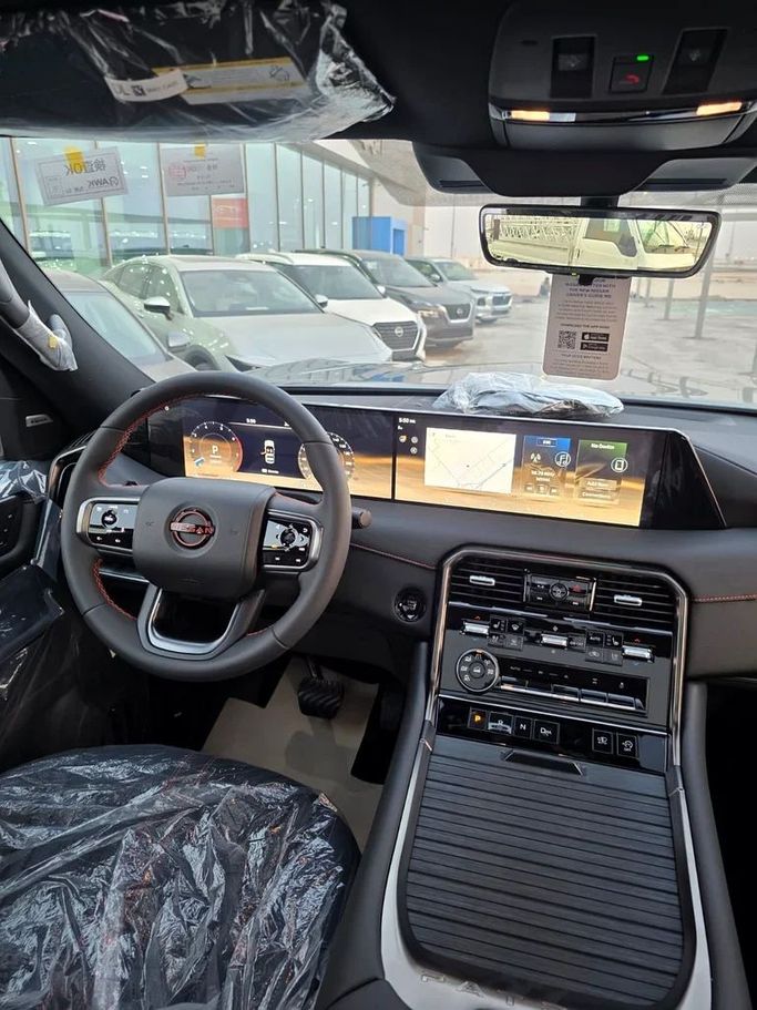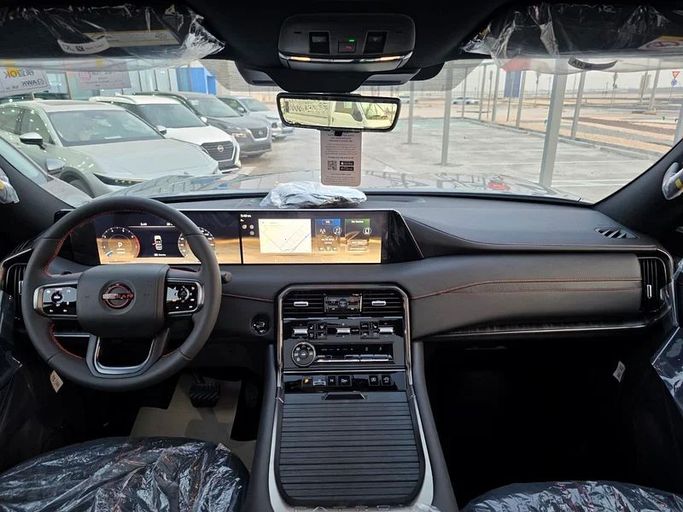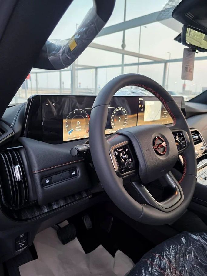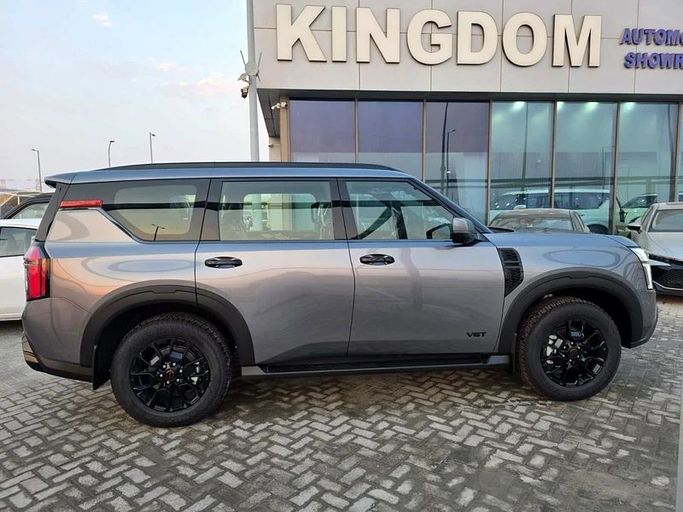 New 2026 Nissan Patrol VII (Y63), a 5-door SUV in grey, combines rugged capability with refined comfort. Powered by a 3.5-liter petrol V6 delivering 425 hp and paired with a smooth automatic transmission, it offers strong acceleration and confident highway performance while the all-wheel-drive system handles tougher terrain with ease. This GCC-spec model brings region-focused equipment and tuning, ensuring robustness in a variety of conditions. Inside, the cabin emphasizes space and practicality, with supportive seating, a well-organized cockpit, and contemporary technology