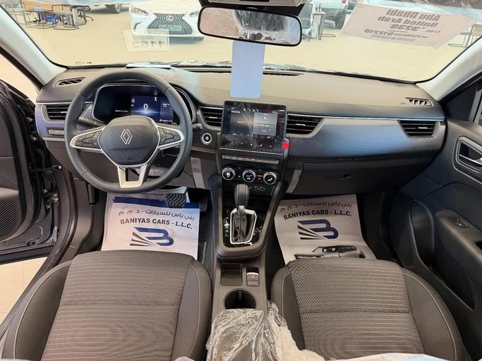 Renault Arkana Model : 2025 Specs : 4 cylinders 1.3 turbo engine 155 horsepower 7 speed automatic transmission Fuel consumption 17.5 Fuel tank capacity 50 liters LED lights Charcoal aluminum rails size 17 Folding side mirrors with flasher signs Smart entry LED back light Rear sensors Black cloth seats Touch screen size 7 inches Rear camera Auto start Automatic hand brake Running his fingerprint Control of the population Bluetooth Rear AC ports Installing the baby seat