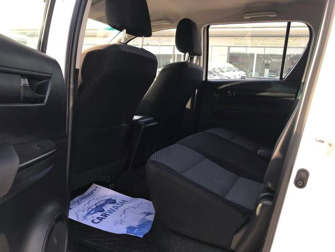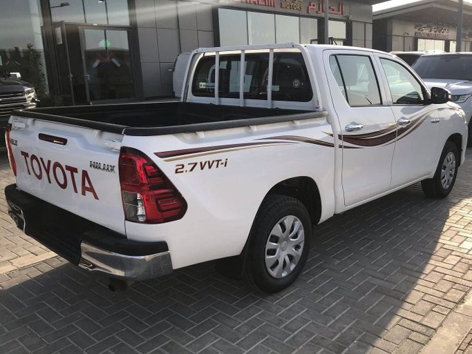 This 2019 Toyota Hilux VIII double cab in white pairs practical, everyday usability with proven reliability. It runs on a 2.7-liter petrol engine delivering 164 hp, matched to an automatic transmission and all-wheel drive for confident performance across conditions. With a single owner and 47,000 kilometers, this GCC-spec pickup offers a well-maintained balance of low mileage and durable construction, suitable for both work tasks and family use. The double cab configuration provides comfortable seating for four, while the robust chassis and durable interior materials are bu