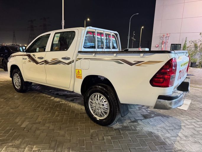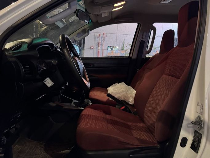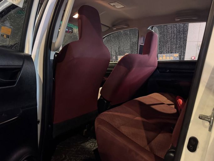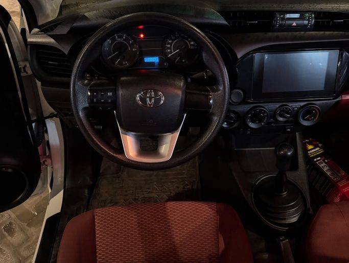 The eighth-generation Toyota Hilux with a white two-seater cabin is a used car released in 2024. The 2.4-liter diesel engine develops about 150 hp in combination with all-wheel drive, providing confident handling and excellent off-road performance in various conditions. The mileage is about 54,000 km, and the car has one owner. This pickup truck combines the company's practicality and reliability with a spacious interior and cargo area, making it suitable for both daily use and weekend work. - One owner - Mileage: 54,000 km - AWD drive - Automatic transmission - 2