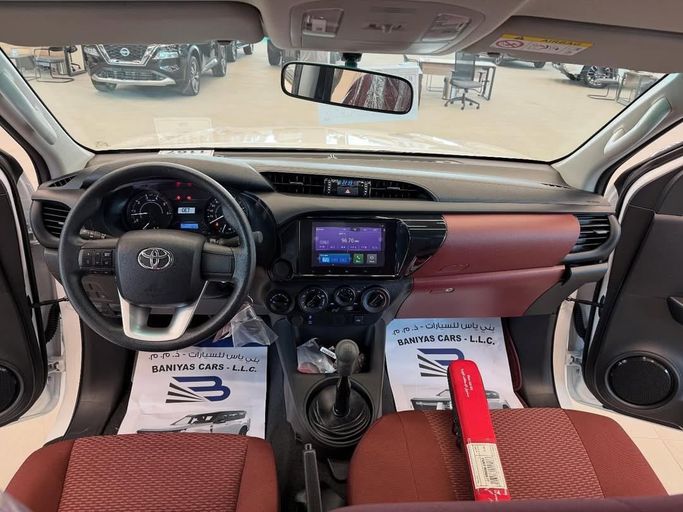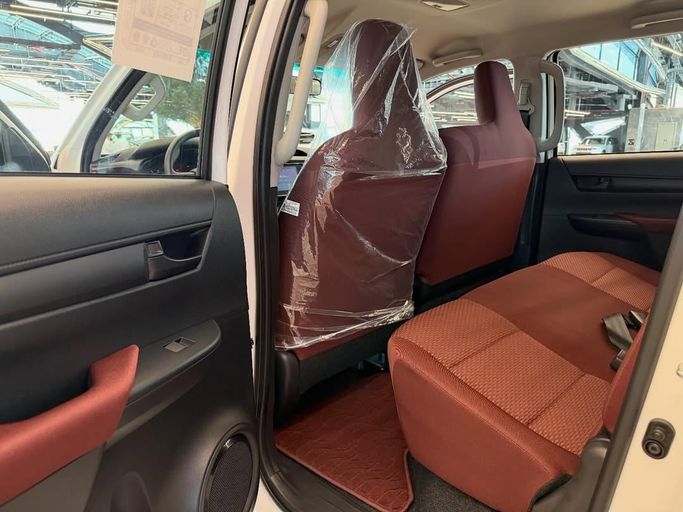 Toyota Hilux 4*4 Diesel ordinary car Model : 2025 Specs : 4 cylinders 2.4 engine Rangles 17 iron Lines side mirrors chrome Door knobs are chrome Cloth seats in red Glass of information. usb port E P S Control the voice commands with Alderkson Bluetooth Dflk