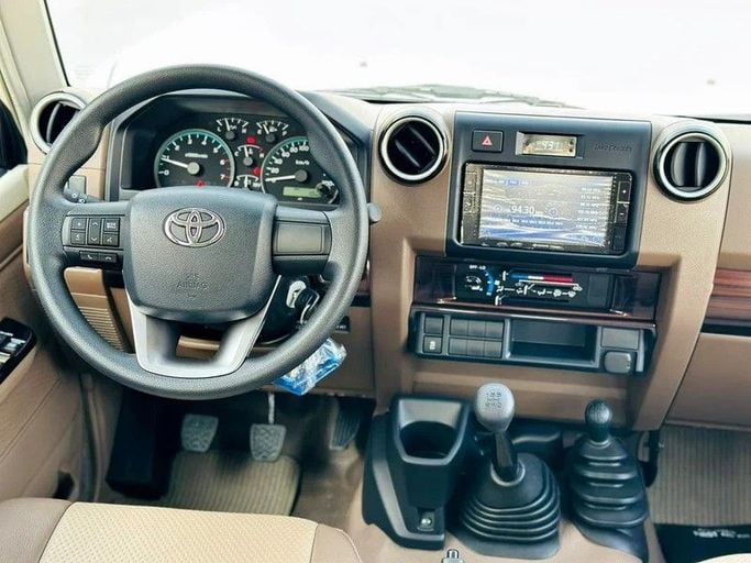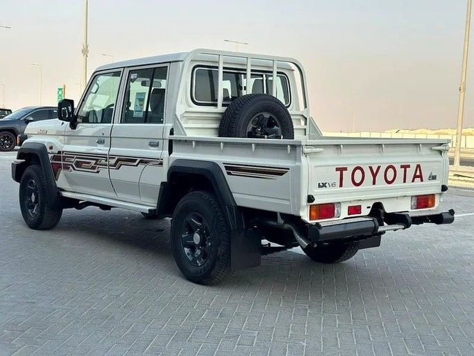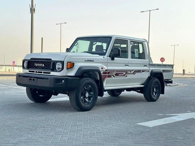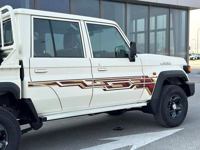 A new 2025 Toyota Land Cruiser 70 LX arrives in a crisp white finish, built on the sturdy double cab pickup platform that blends practical cargo space with everyday usability. This GCC-spec model carries the renowned durability of the 70 Series while incorporating refinements that keep it relevant for contemporary use, making it a quiet but confident presence on both urban roads and off-road trails. Power comes from a 4.0-liter petrol engine delivering 228 horsepower, paired with a manual transmission and all-wheel drive. The combination offers direct, intuitive control an