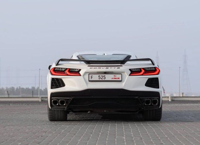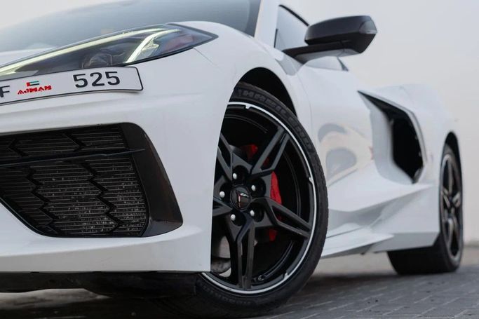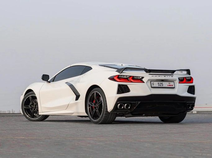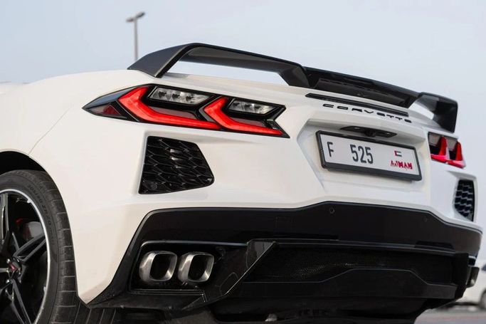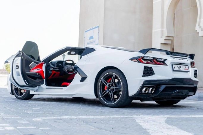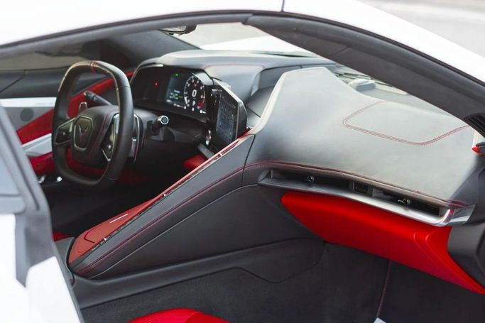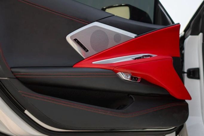Chevrolet Corvette 3LT, imported – white exterior with a red interior, 64,000 km mileage – excellent condition – comfortable and sporty. Detailed specifications: Full 3LT trim, very attractive premium red leather interior, power seats with cooling and heating + driver memory, BOSE sound system, large central screen + Apple CarPlay/Android Auto, rear camera + front and rear sensors, HUD head-up display, smart entry and start (push start), dual-zone climate control, front and rear LED lighting, Sport/Comfort driving modes, sport rims + excellent tires, regularly maintained –