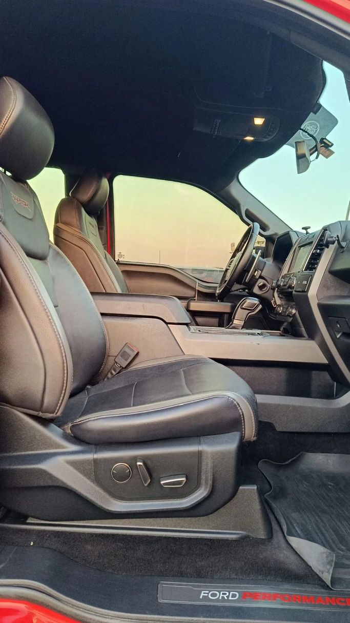 Ford Raptor F150 | 2018 | GCC Specifications This Ford Raptor F150 is equipped with premium features, ensuring a comfortable and safe driving experience. It includes leather seats, four-wheel drive, cruise control, traction control, parking sensors, a rear camera, power steering, sport mode, electric mirrors, heated seats, and a refrigerator. Features: - Alarm System - AUX / USB Input - CD Player - Electric Seat Adjustment - Electric Windows - Leather Seats - Alloy Wheels - Electric Mirrors - Electrically Foldable Mirrors - Front Parking Sensors - LED Headlights - Panoram